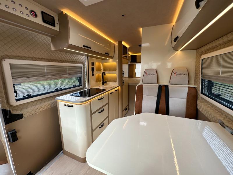 Yazgan Karavan’ın 15 m³ PSA Grubu modeli, iç mekanında ferah bir yaşam alanı sunar. Optimize edilmiş depolama alanları, konforlu yataklar ve modern mutfak ekipmanlarıyla donatılmıştır. Bu sayede, uzun süreli seyahatlerinizi rahatlıkla gerçekleştirebilir ve her anınızdan keyif alabilirsiniz.
